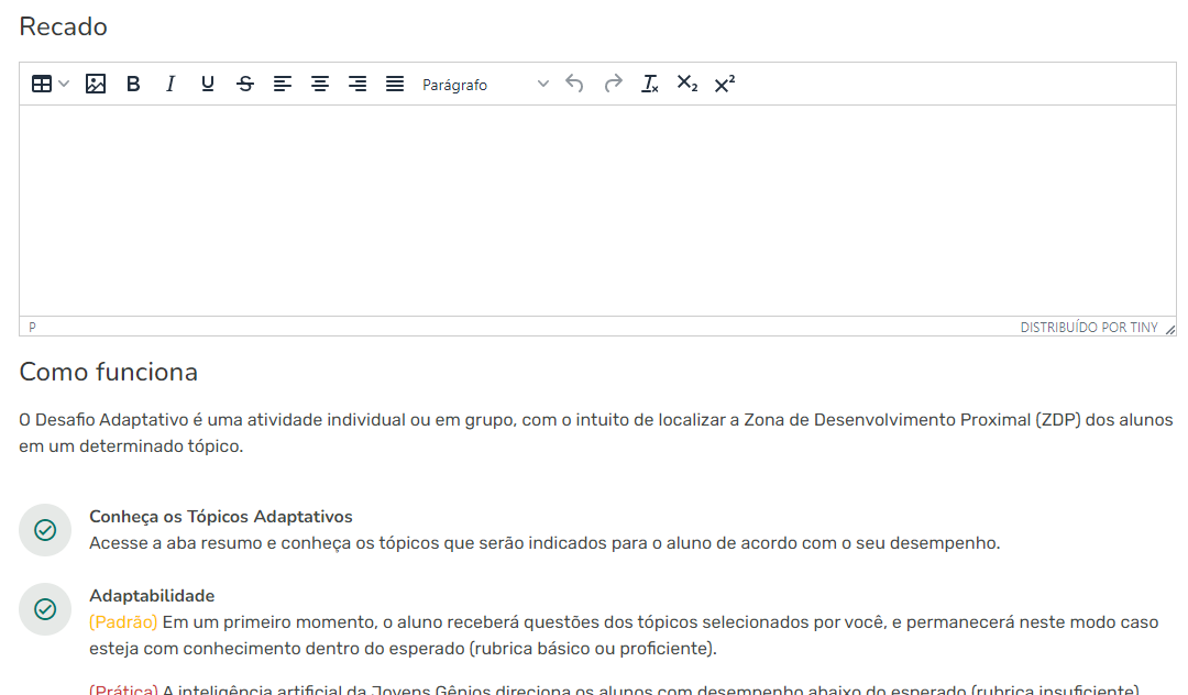 COMO CRIAR UM DESAFIO ADAPTATIVO?