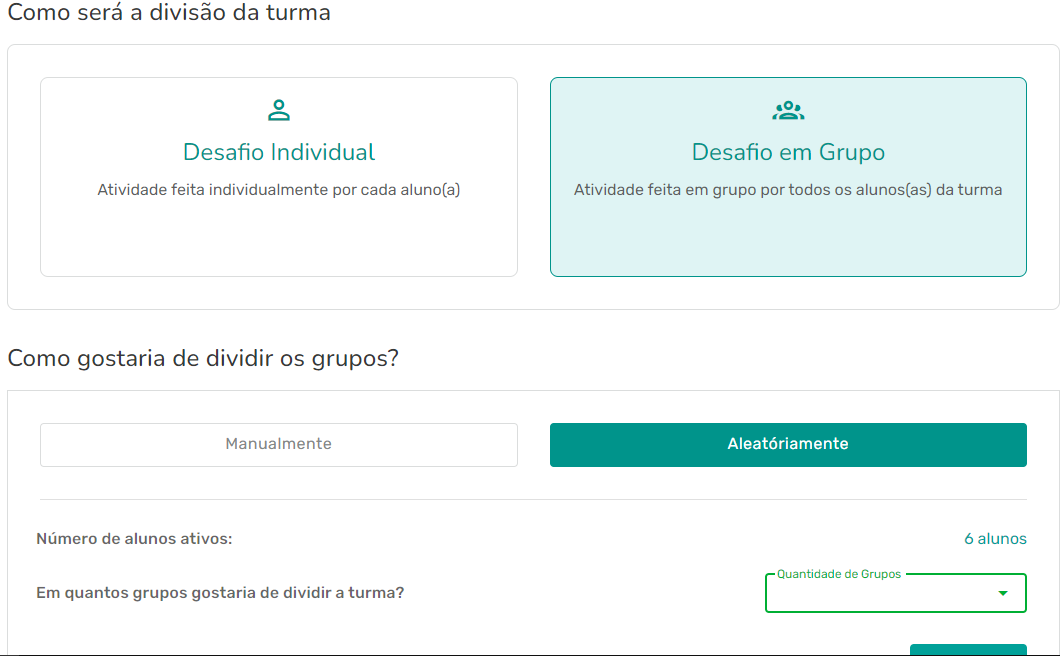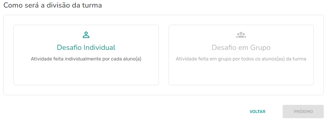 Passo 6 - Selecione se o desafio será feito individualmente ou em grupo.
