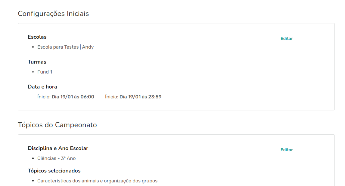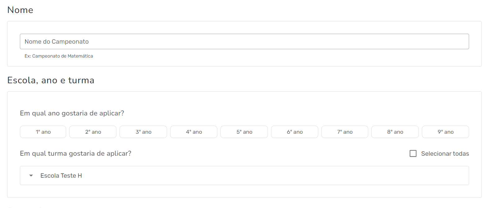 Passo 3 - Dê um nome para o Campeonato e escolha a escola, o ano e turma em que você deseja aplicar essa atividade.
