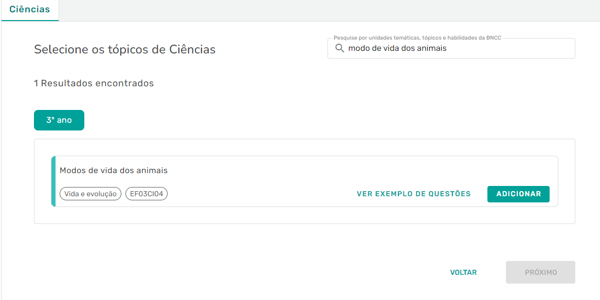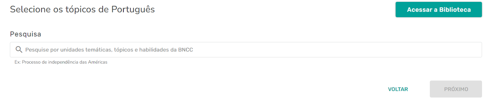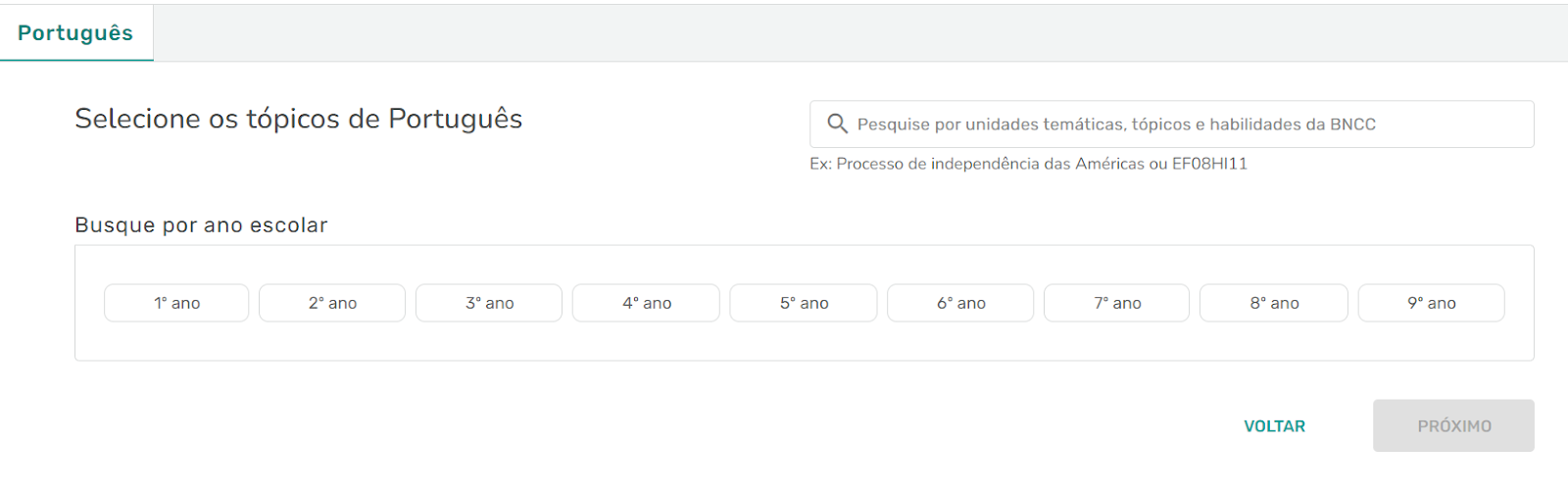 Passo 6 - Agora, escolha o ano escolar e o assunto/habilidade da BNCC que você deseja trabalhar com seus alunos. Você possui duas opções: