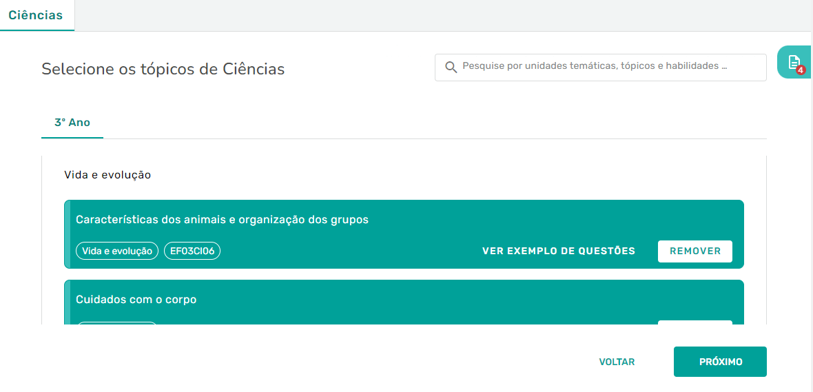 Passo 8 - Em seguida, selecione a temática que deseja trabalhar com seus alunos. Após selecionar, role para baixo e escolha os tópicos.