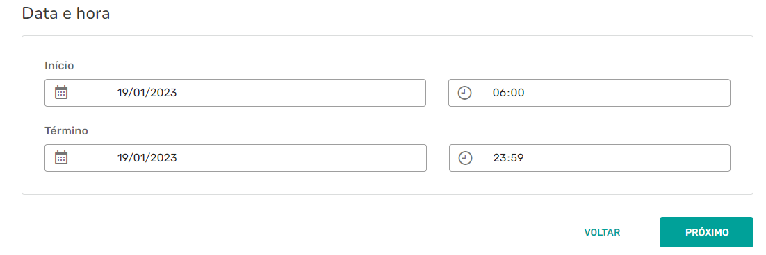 Passo 4 - Role a tela para baixo. Agora, você irá definir o período em que essa atividade ficará disponível para o aluno, como o campo mostrado abaixo. Logo após, clique em “Próximo”.