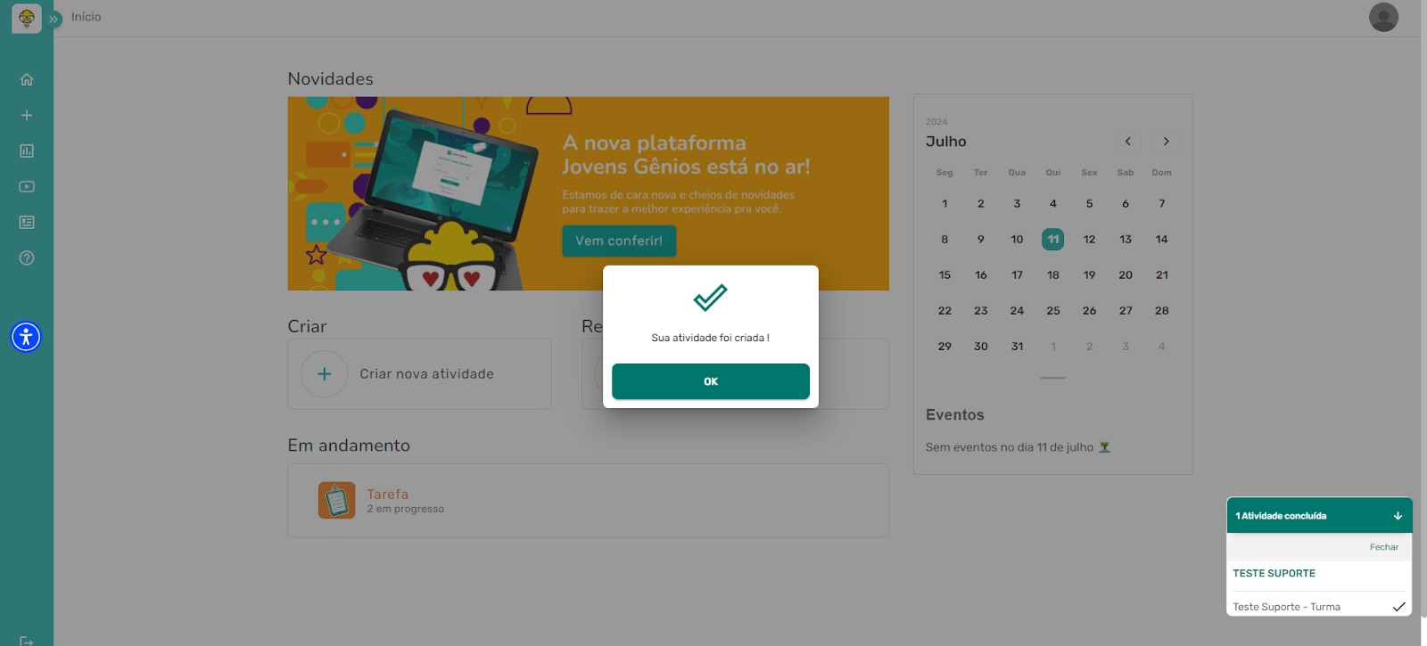 Passo 3 - Depois disso, você precisa clicar no ícone da atividade ou avaliação que você criou dentro dos quadradinhos de atividades.