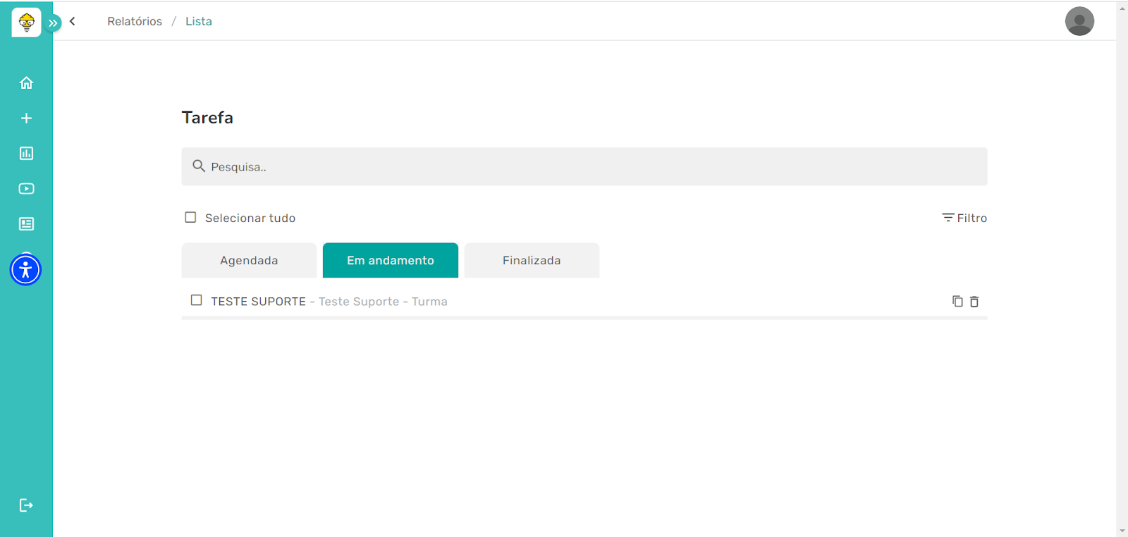 Passo 4 - Você precisa clicar em “Em andamento” ou “Finalizada”, dependendo do prazo da atividade.