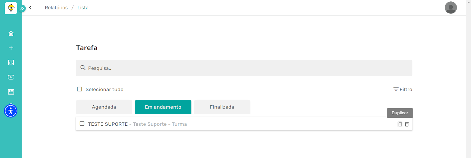 Passo 5 - Feito isso, você precisa clicar no ícone de Duplicar, que fica logo após o nome da atividade, ao lado do símbolo de “Exclusão”.