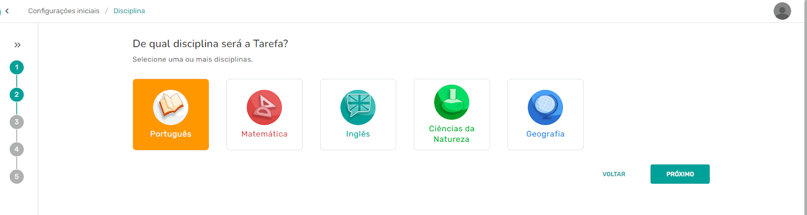 Passo 7 - Feito isso, a tela de seleção de disciplinas também irá abrir com a disciplina já selecionada. Você pode clicar em Próximo.