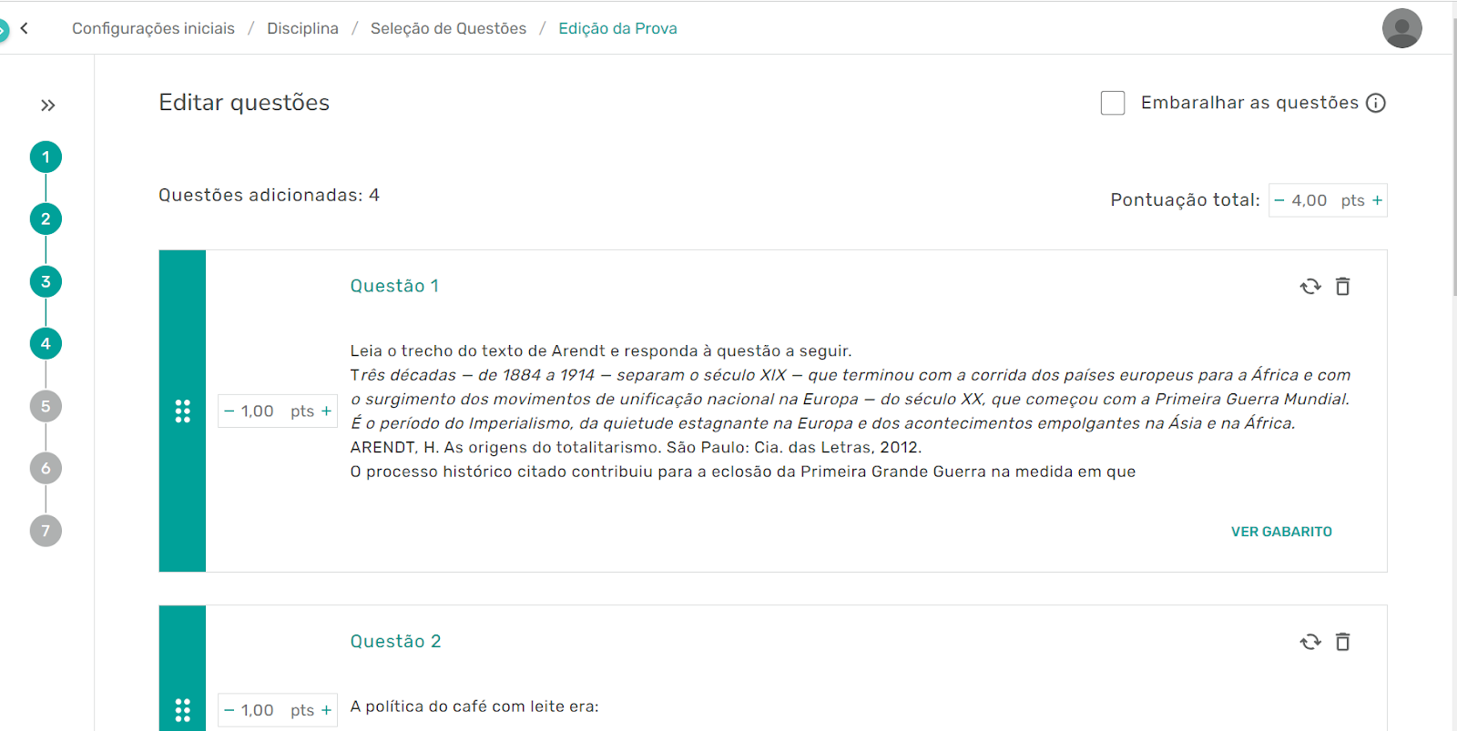Passo 14 - Após isso, você consegue revisar as questões e alterar a pontuação que deseja que cada uma valha.