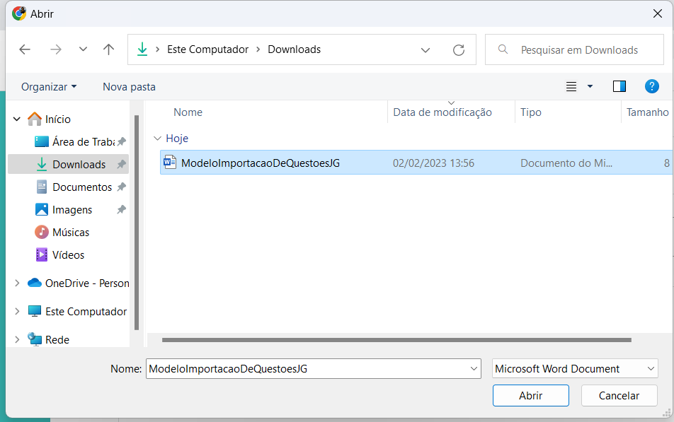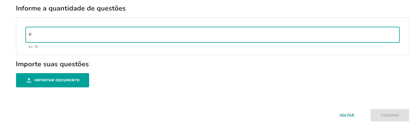 Passo 7 - Informe o número de questões inseridas no modelo e clique em “Importar Documento” para escolher o arquivo em “Word” preenchido por você anteriormente com as questões desejadas.