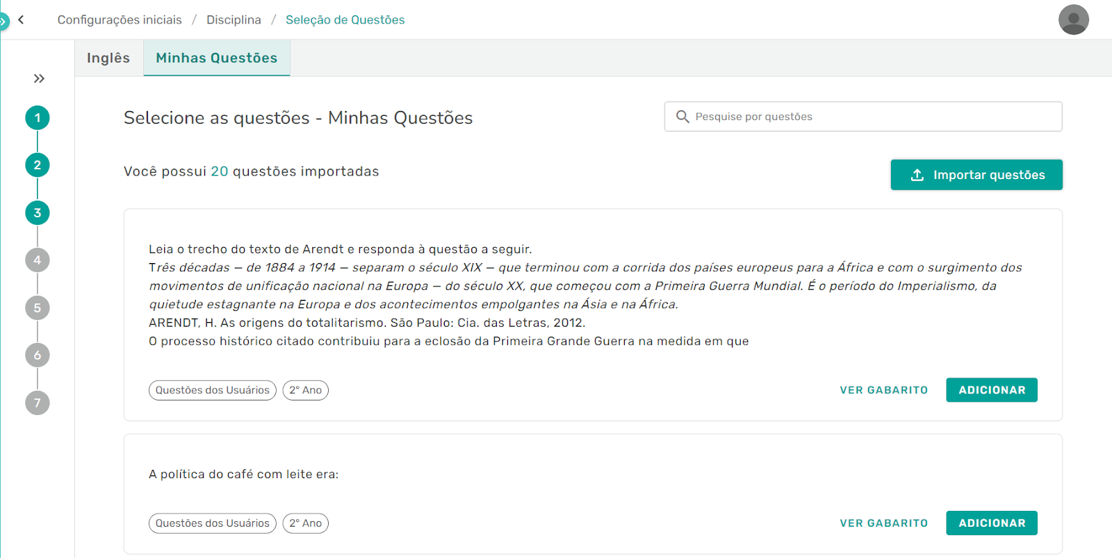 Passo 12 - Você consegue pesquisar o enunciado das questões, assim como ver o gabarito. Depois é só clicar em “Adicionar”.