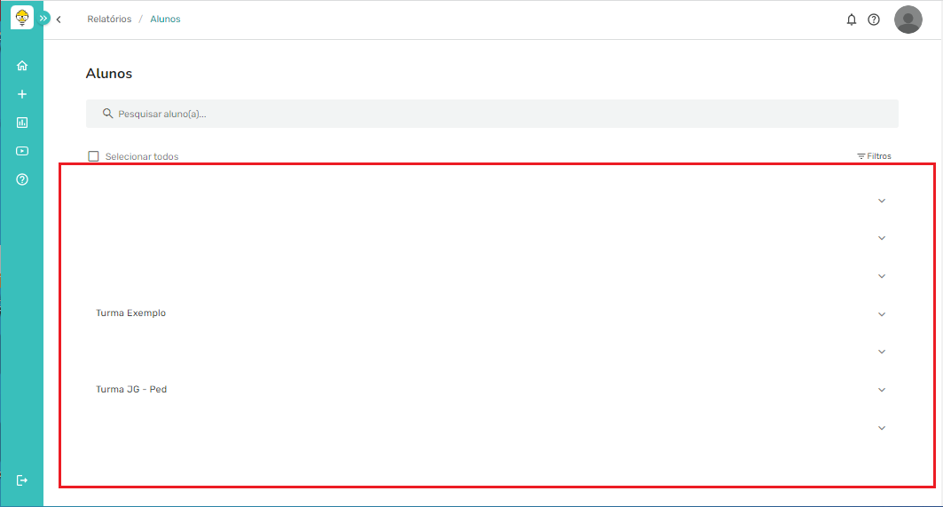 Primeira maneira: Na lupa, escreva o nome do aluno. Logo, automaticamente, mostrará a lista com os nomes. Assim, você pode digitar o nome completo do aluno que deseja verificar o relatório de desempenho.