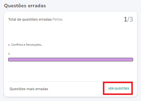 Passo 5 - Ao entrar na atividade, arraste a tela para baixo até chegar em “questões erradas”. em seguida, clique em “ver questões”;