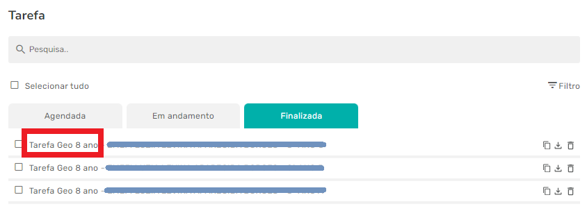 Passo 4 - Verifique o status da atividade. Neste exemplo, será mostrado o status de atividades já finalizadas. Agora basta clicar no nome da atividade;