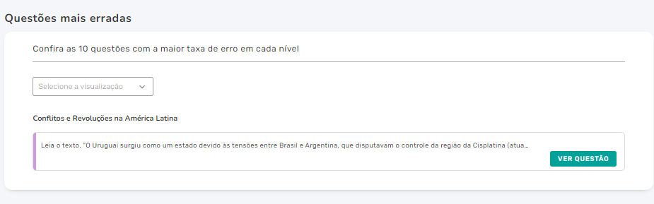 Olá, professor! Na plataforma, é possível saber quais questões os alunos tiveram maior dificuldade e quais foram mais fáceis. Vamos juntos gerar esse relatório?