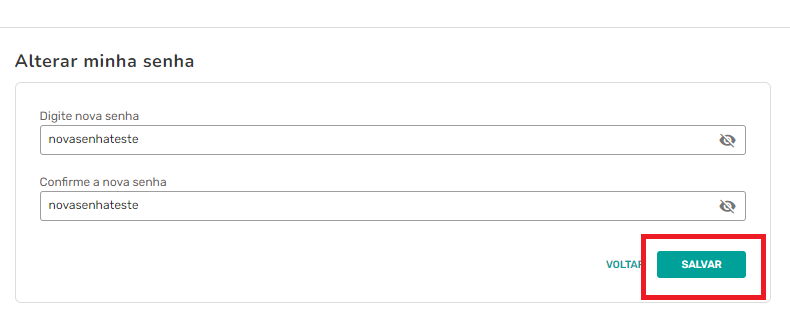 Passo 4 - Após definir a sua nova senha, clique no botão de salvar.